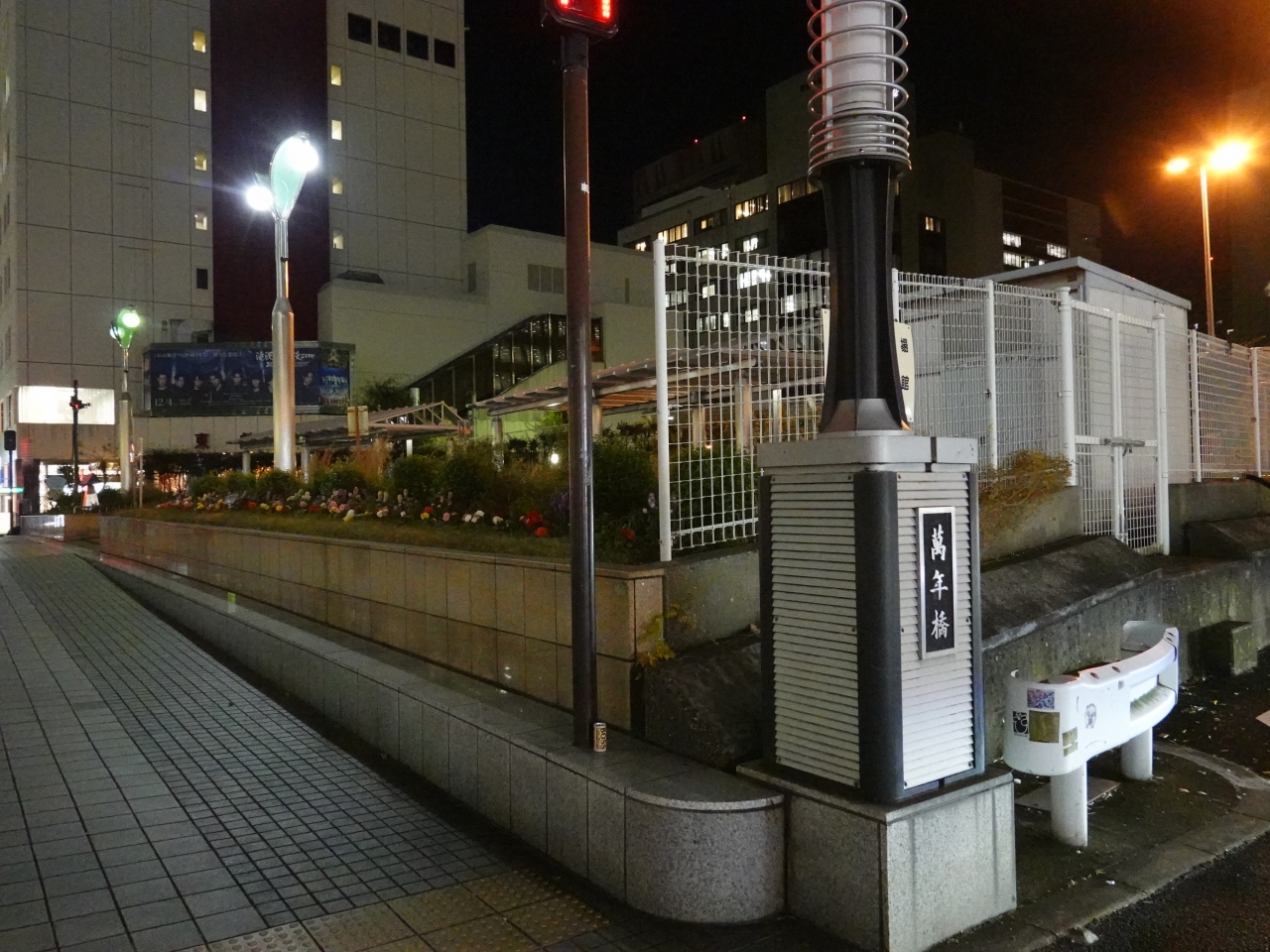 日比谷線の東銀座駅の6番出口を出て銀中通りを渡るとすぐに万年橋があります。住所は橋の手前は銀座で橋を渡ると築地になります。かつては橋の下には築地川が流れていましたが、現在は埋め立てられ首都高速道路になっています。普通に歩いていると橋を渡っているという感覚はありません。シンプルな親柱に「萬年橋」というプレートがある程度でそれほど印象的な橋ではありません。