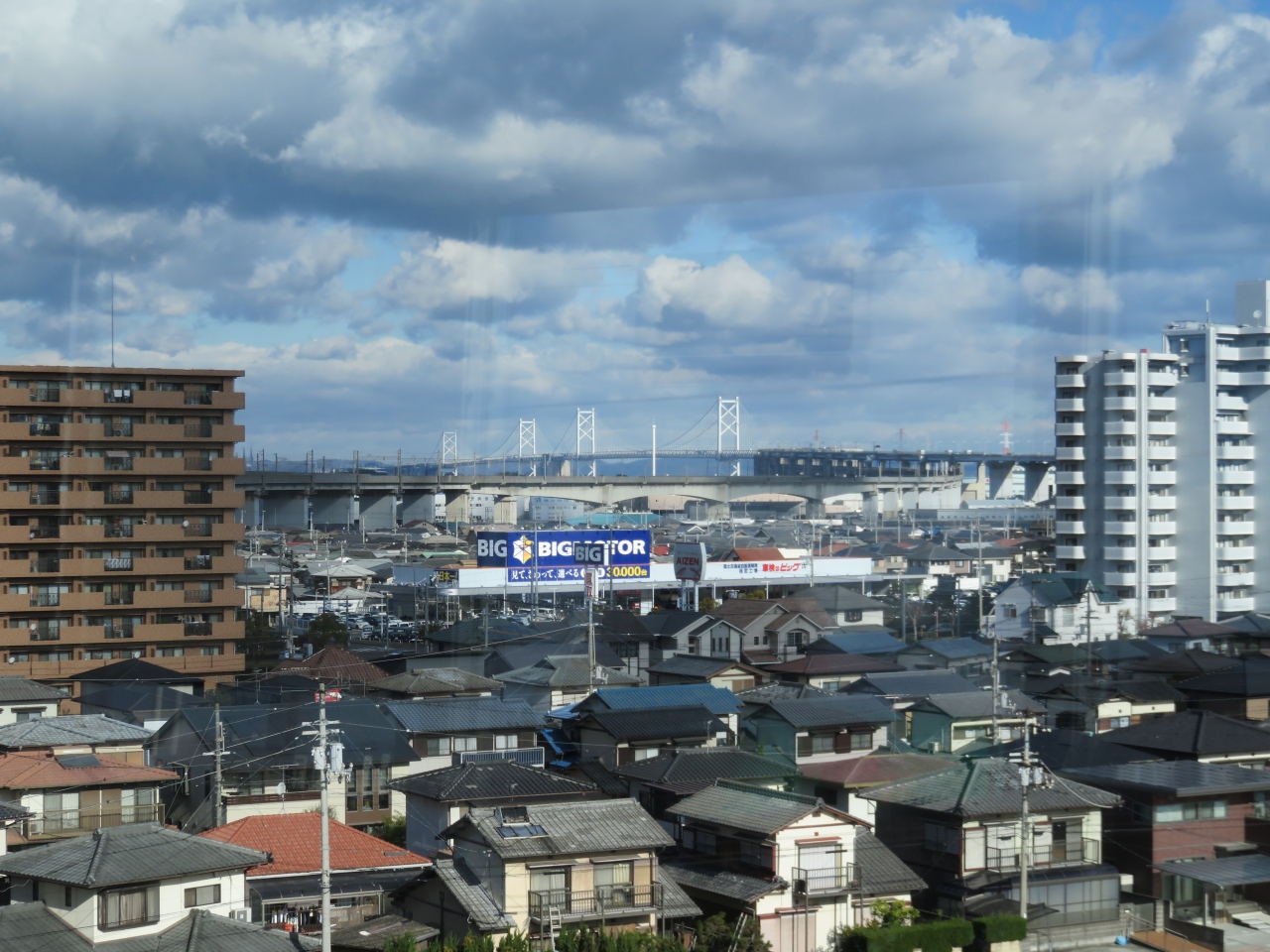 橋を渡っている時は大橋らしくないので、坂出付近から遠景を写しました。