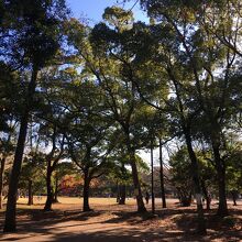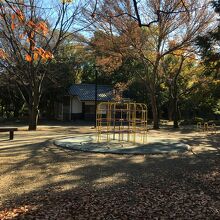 木々に囲まれた広い公園で中央は広い広場になっていて園児がたくさん遊んでいました。子供の遊戯施設もあり、生えている木は垂直でなく少し曲がって立っているものが多かったです。トイレと完備していて、清澄庭園と隣接しています。
