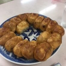 表面だけカリカリですが、生地はもちもちしており、パンのような不思議な食感の餃子です。焼くというより、フライパンで揚げているような感じでした。餃子だけでもおいしいですが、自家製のお新香と一緒に食べるのがおすすめです。
