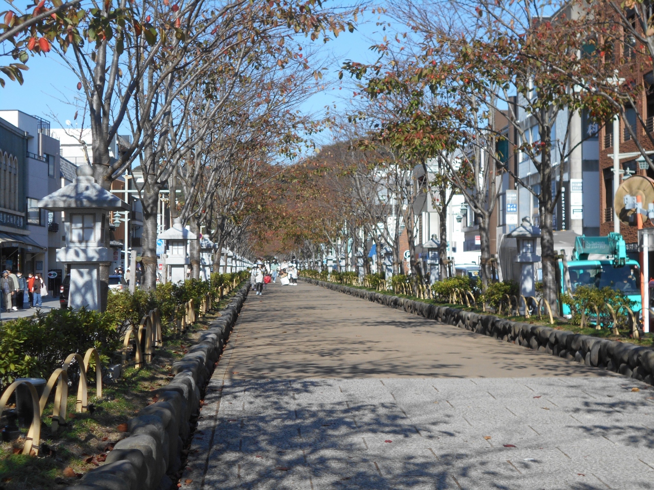 鶴岡八幡宮の参道でもある段葛はその両側の車道よりも一段高くなっているので、ちょっと優越感を感じられます。両側の若宮大路は車道が交通量が多いだけに、歩行者天国の役割も果たしていています。ただ、若宮大路沿いにある店をのぞこうとするには横断歩道を渡るために引き返さなくてはならなかったりして少し面倒。段葛を歩くか、若宮大路の歩道を歩くか悩みます。