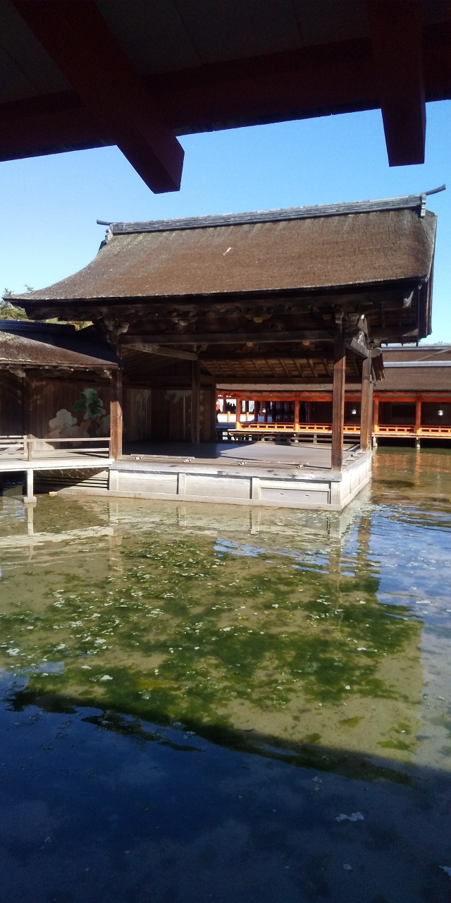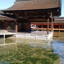 海上の能舞台は、台風などの高潮などの影響もありメンテナンスが大変そう。