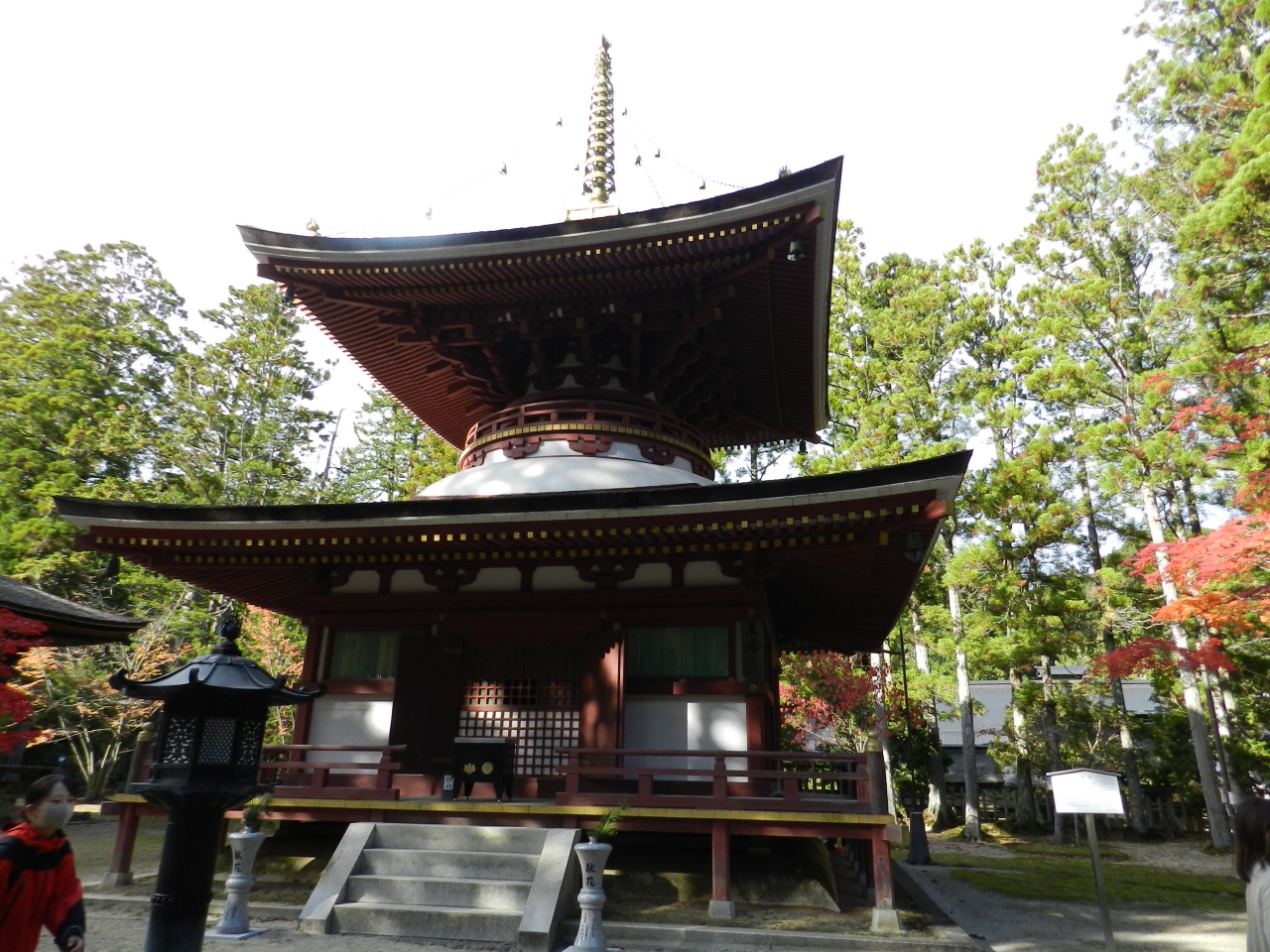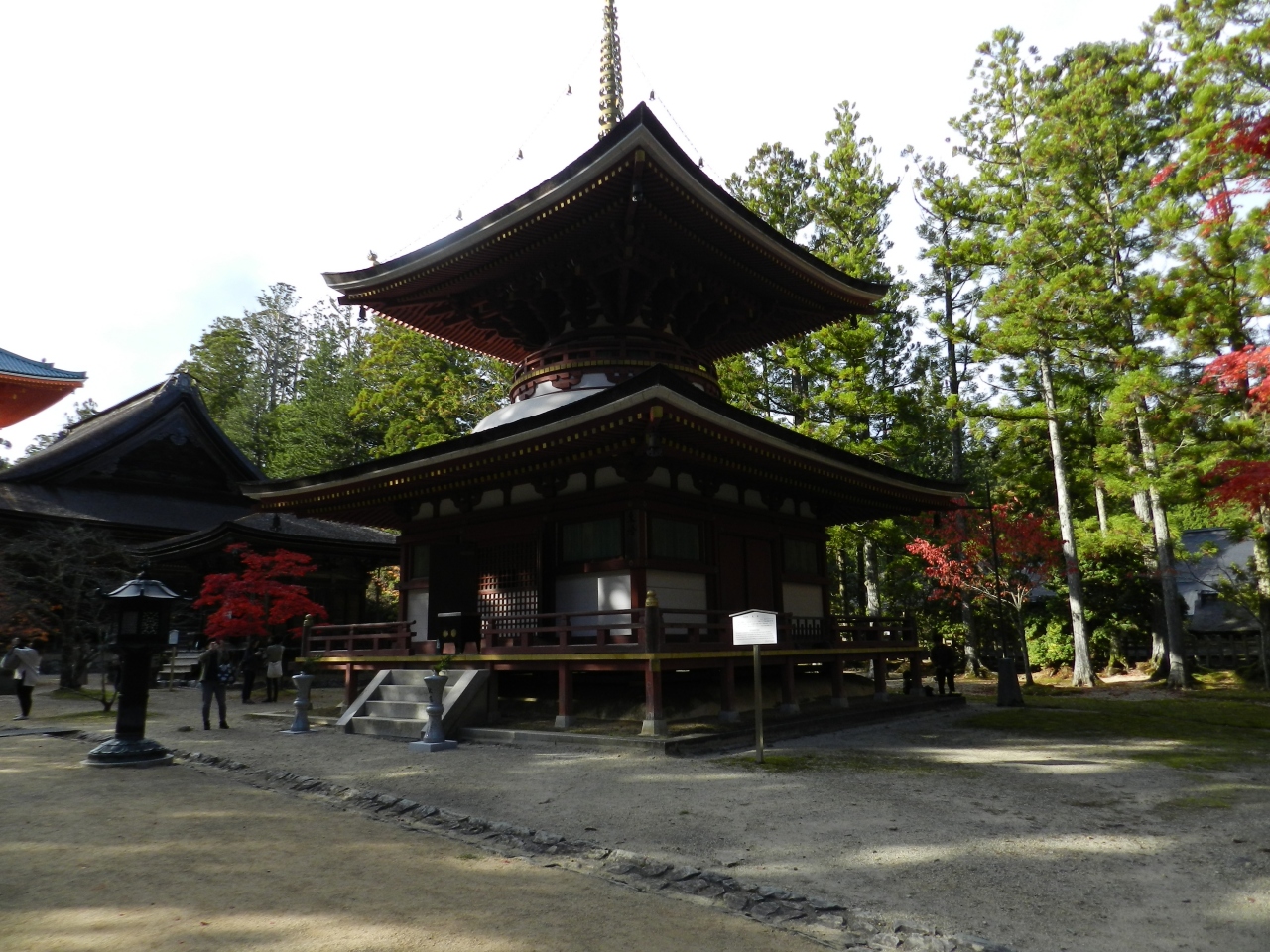 世界遺産の天空の聖地「高野山」の二大聖地の一つ壇上伽藍の東側に建つ落ち着きのある美しい二重の塔。壇上伽藍参道の蛇腹路を行くと最初に眼に入ります。大治2年(1127)白河院の発願により醍醐寺勝覚僧正によって創建されたそうです。天保14年(1843)焼失後再建されず昭和59年(1984)に再建されたそうです。