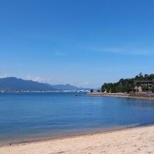 海に向かって立つ赤い鳥居が象徴的。厳島神社の大鳥居は改修中で見ることができなかったが、こちらで代わりを見ることができたような気がした。だいぶ小さいが。