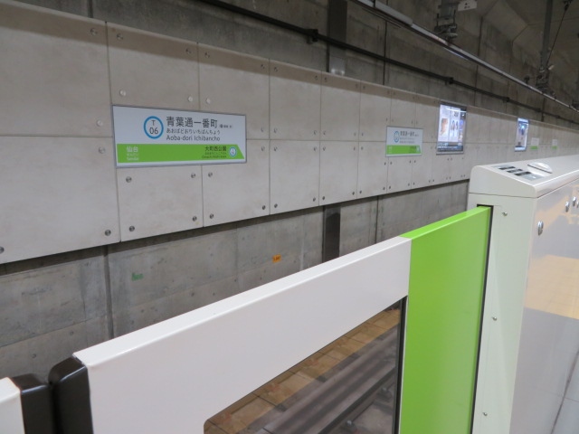 青葉町や羽生弓弦や荒川静香のモニュメントがある国際センター駅に行くなら、この東西線を使います。比較的新しい地下鉄路線ということで最新式の転落防止も付いてます。南北線に比べると乗客は明らかに少ないなあという印象です。