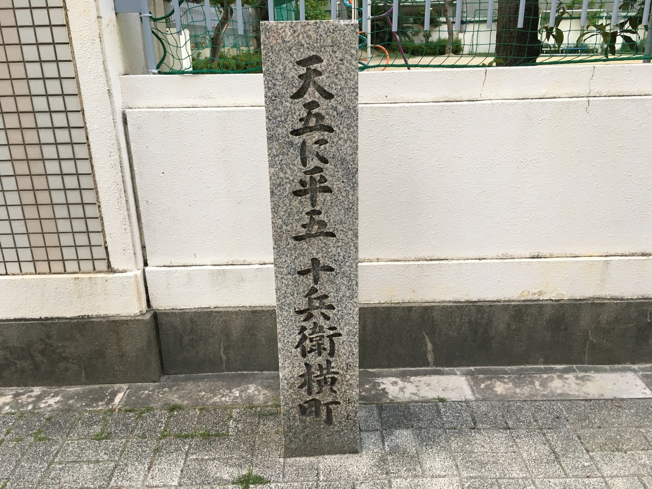 天五に平五十兵衛横町の石碑は、北浜駅の近く開平小学校の前にあります。両替商は、1628年に天王寺屋五兵衛が始めたのがその始まりです。この場所は、最大手の両替商の天王寺屋五兵衛と平野屋五兵衛が向い合せに店を構えていたことからこの近辺を十兵衛横町と呼ばれたとのことです。五+五で十ということのようです。