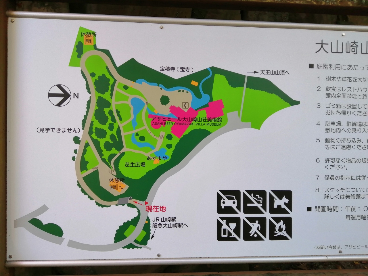 京都駅からJR京都線で15分ぐらいの山崎駅にあります。京都と言っても大阪との府境に近いです。無料送迎バスもありますが、歩いても7~8分です、坂はきついですが。