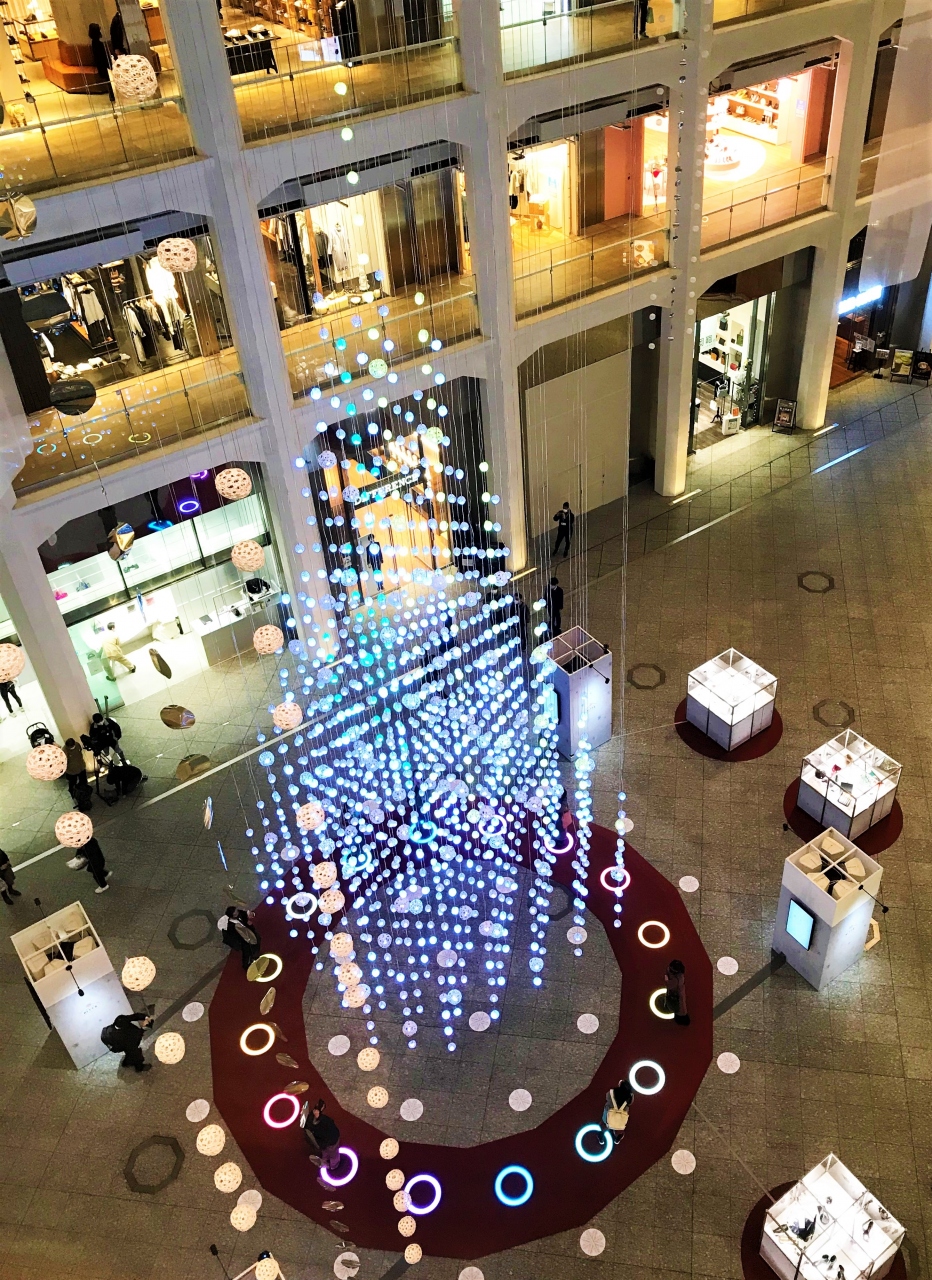 その水引で作った球を1000個組み合わせて作れられたのが、KITTEの2020年のデコレーション。