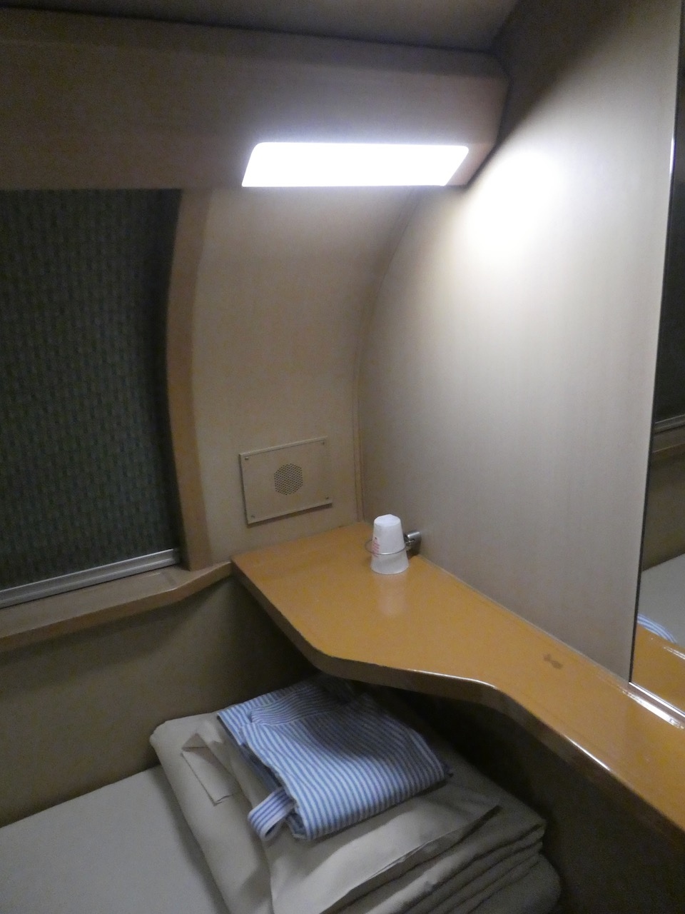 昔は入手困難と言われた切符も、土曜の上り、当日でもシングル入手できました。満席ではなかったようで空室もちらほらありました。