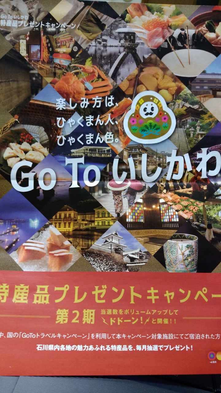 山中、山代、粟津、片山津の4つの温泉を総称して「加賀温泉郷」と言うらしく、各温泉の案内やホテル、旅館のパンフレットが沢山ありました。 「Go To いしかわ」というキャンペーンの事を聞いたら、詳しく教えて下さいました。