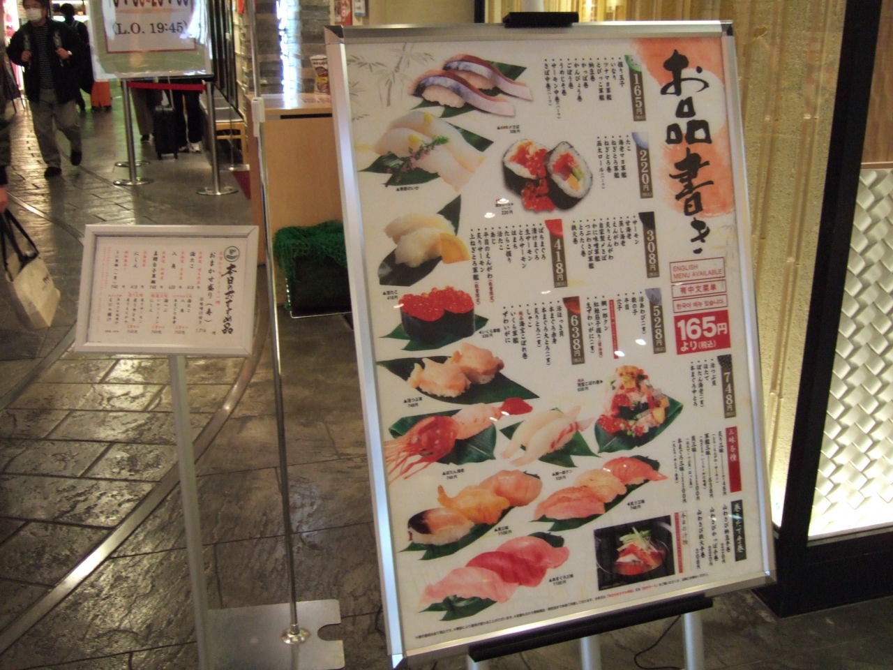 新千歳空港国内線ターミナル3階にある回転寿司。以前入った時は美味しくなかったのですが、娘が寿司を食べたいと言うので入ってみました。改善されたのかネタは新鮮で、以前はゴムのようだった数の子も美味しくなっていました。ボタン海老は大きくて美味しいですが、1貫700円と少々値は張ります。