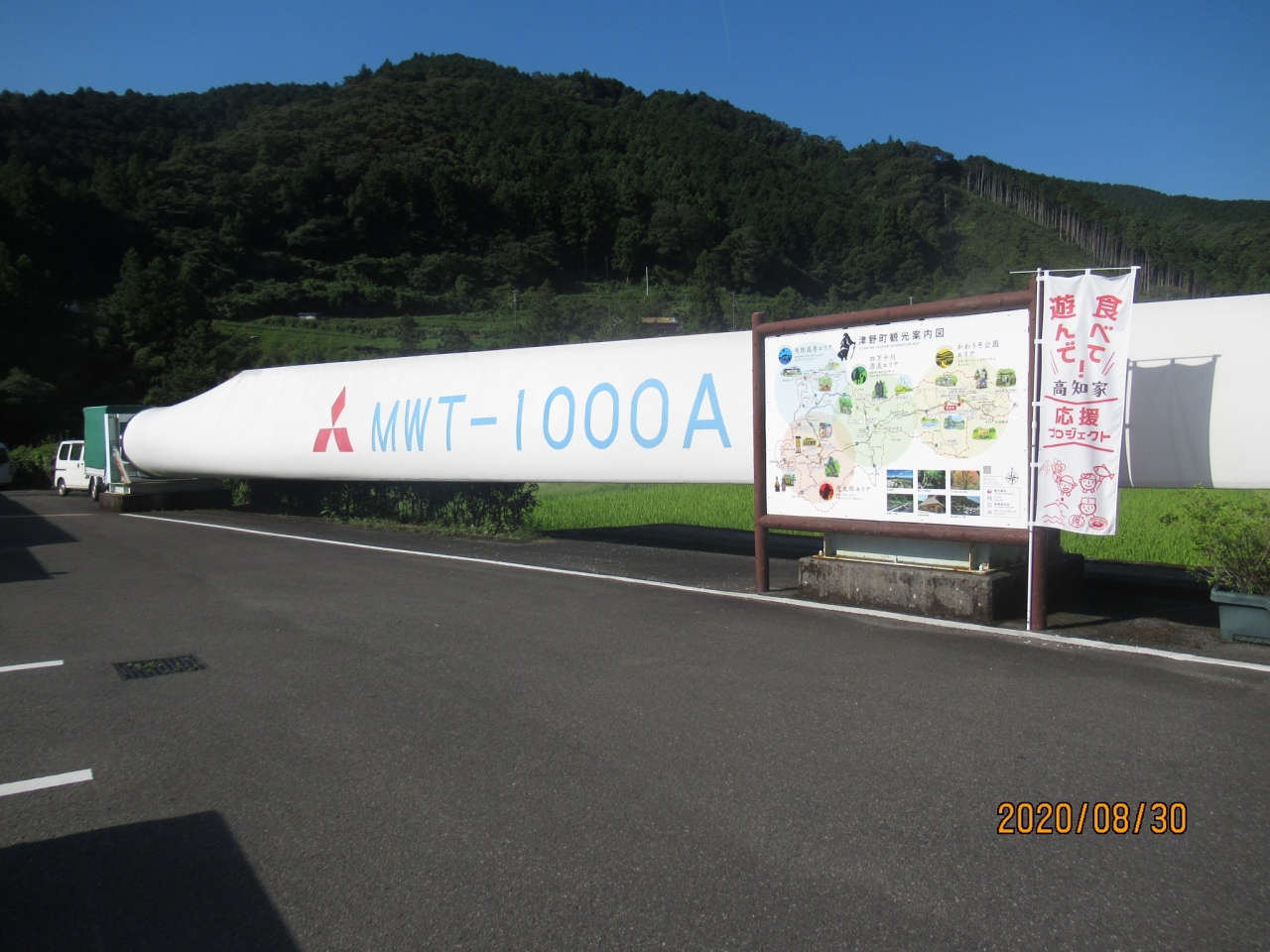 国道197号線の津野町にある、大きな風車の羽が目印ですぐわかります。