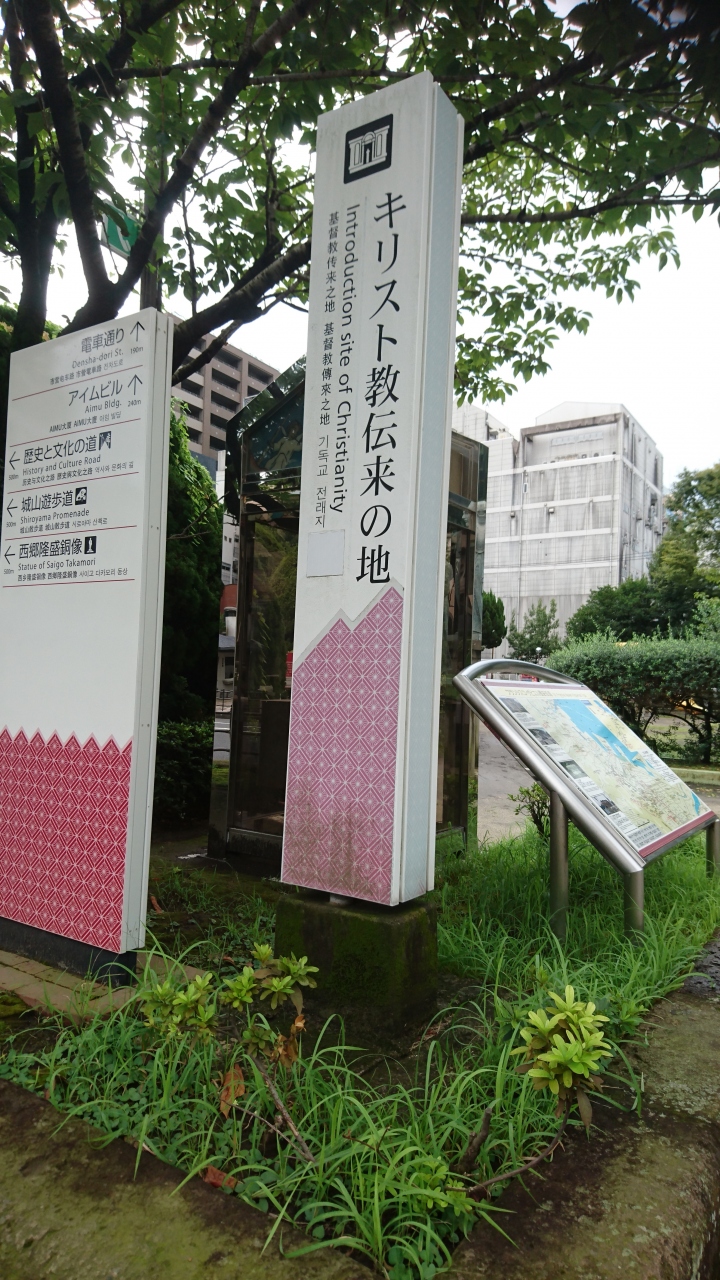 1549年に鹿児島に上陸したフランシスコ・ザビエルを記念した公園が東千石町にありました。それほど広い公園ではありませんが、ザビエルの功績を讃えて建てられたザビエル教会の旧聖堂の一部やザビエルの胸像などがあり、歴史的な意味からも必見です。