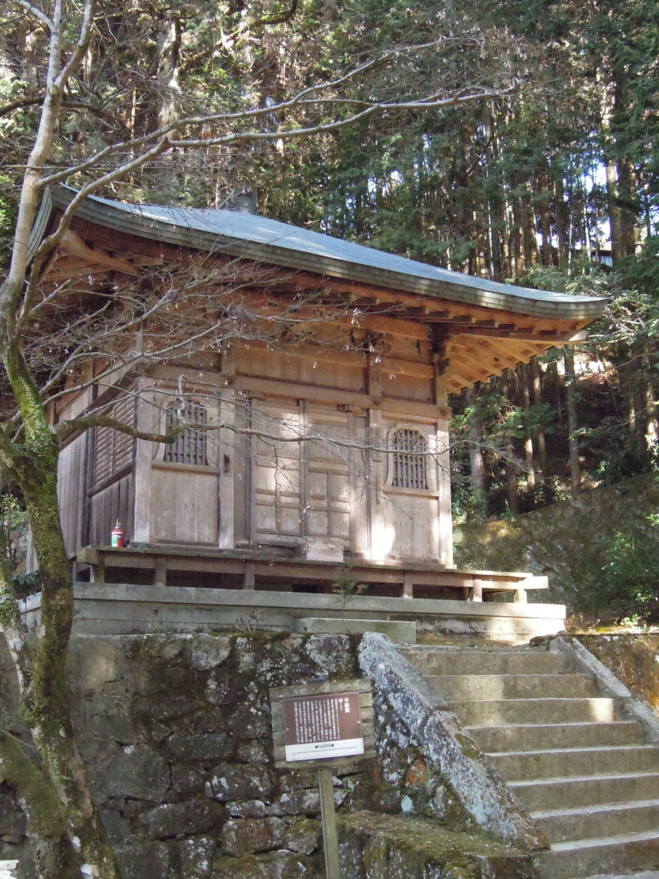 奥の院にあるお堂だ。性空上人をまつる開山堂近くに護法堂があり、その隣に位置する。護法堂は上人に付き従ってきた二人の童子である乙天(不動明王の化身)と若天(毘沙門天の化身)を祭神とするが、不動堂の名前から知れるように乙天の本地仏である不動明王を祭る。江戸時代の建築だ。ところで、若天の本地仏はどこに祭ってあるのだろうという疑問もわいた。