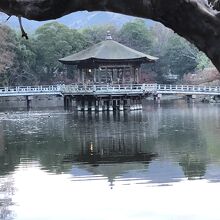 鷺池に浮かぶ浮見堂は風流