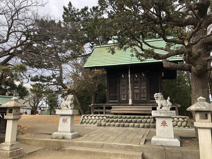 JR茅ヶ崎駅の北口から、歩いて10分ほどのところにある神社です。拝殿の前には青面金剛像の庚申塔があり、その横には説明書きの看板が立てられています。庚申塔は江戸時代になって、庚申信仰によって盛んに造られるようになりましたが、この庚申塔は1658年という年号が読み取れ、かなり初期の庚申塔と考えられています。