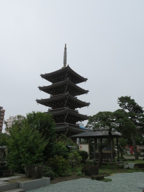宮城野の寺町にあるお寺の中では、最も敷地面積の広いお寺ではないかと思います。境内の中には五重塔があります。あと、境内に鐘楼のようなものもあって、赤が鮮やかです。山門も見事で、本堂のピンクの柱もカラフルで素敵です。