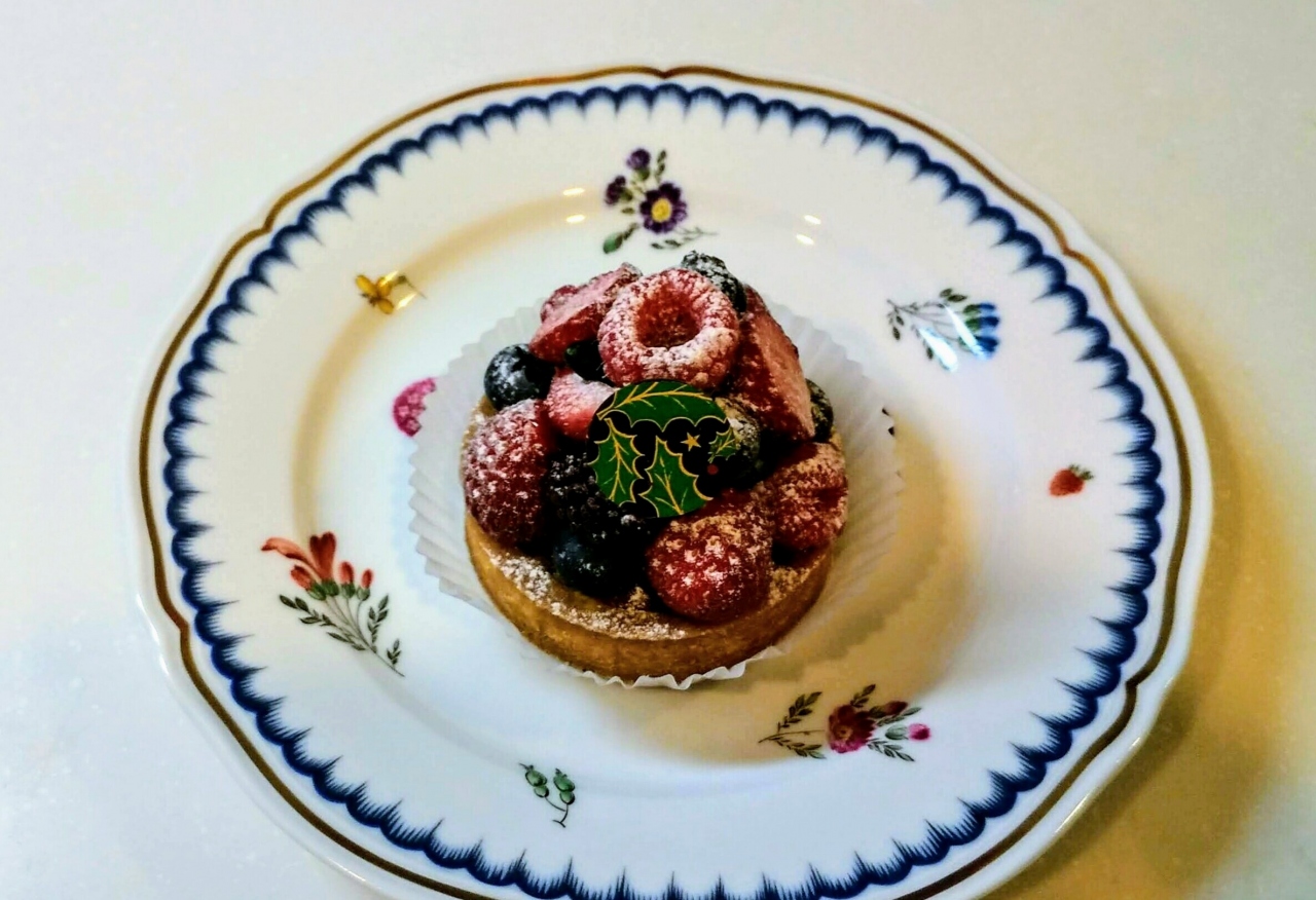 見た目も綺麗な「タルト・フリュイ・ルージュ」は柊柄のチョコレート付き、栗好きとしては「オーブナ」の味が気に入りました。