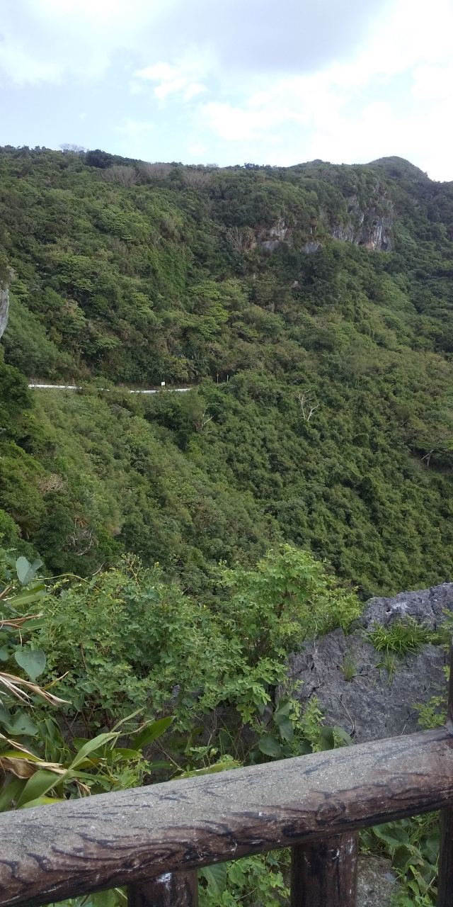 茅打(かやうち)バンタのバンタは、崖を意味する言葉だそうで、名前のとおり崖の傍から美しい海岸線とやんばるの森を眺めることが出来ました。