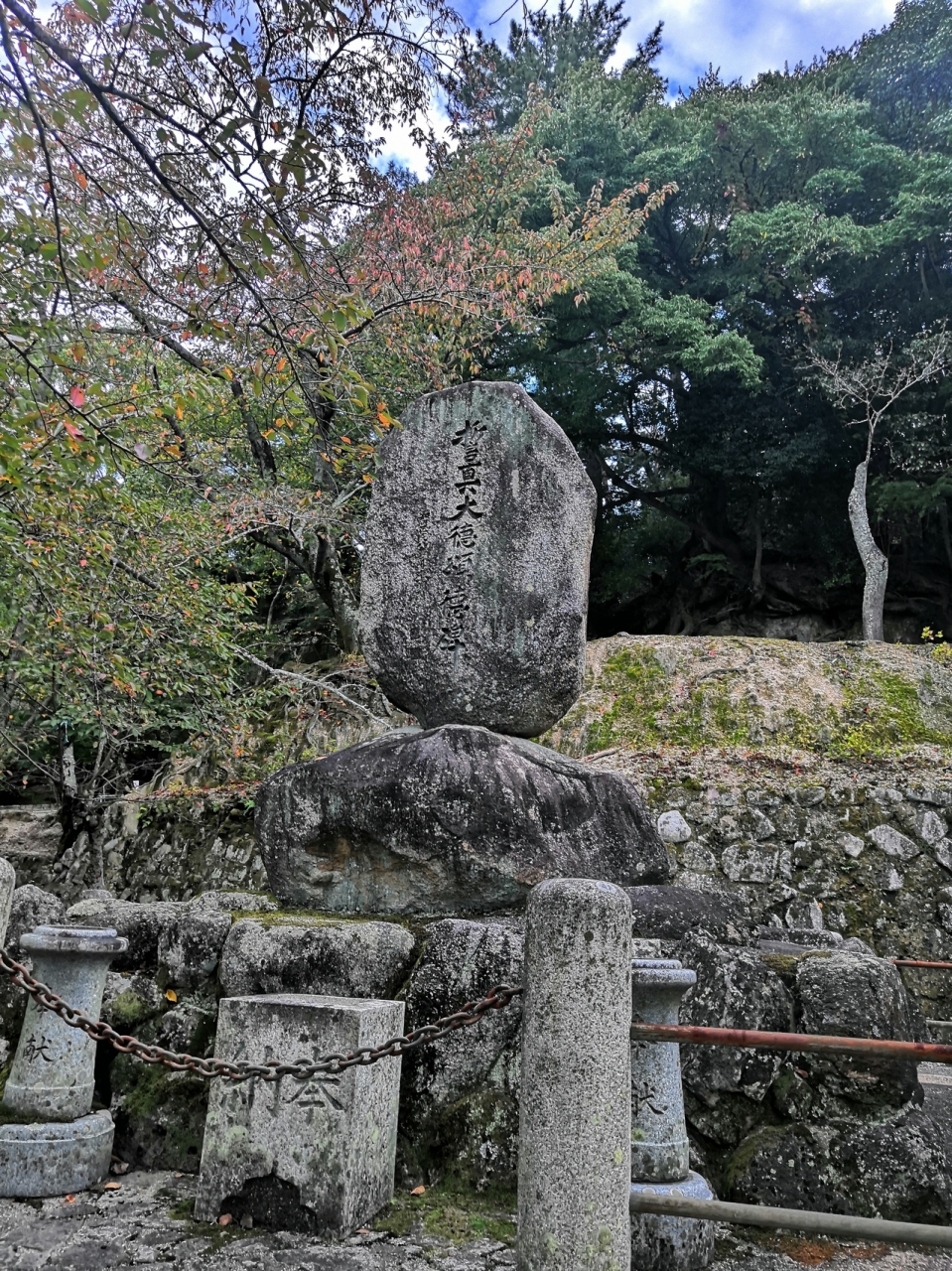 江戸時代のお坊さんで宮島の恩人とも言われる誓真を称える碑です。すぐ近くに光明院という誓真が修行した寺があり、そこを過ぎて見晴らしのいい広場のような場所にあります。文字はほぼ読めない状態ですが、少し調べるだけでいかに立派な人物かはわかりました。