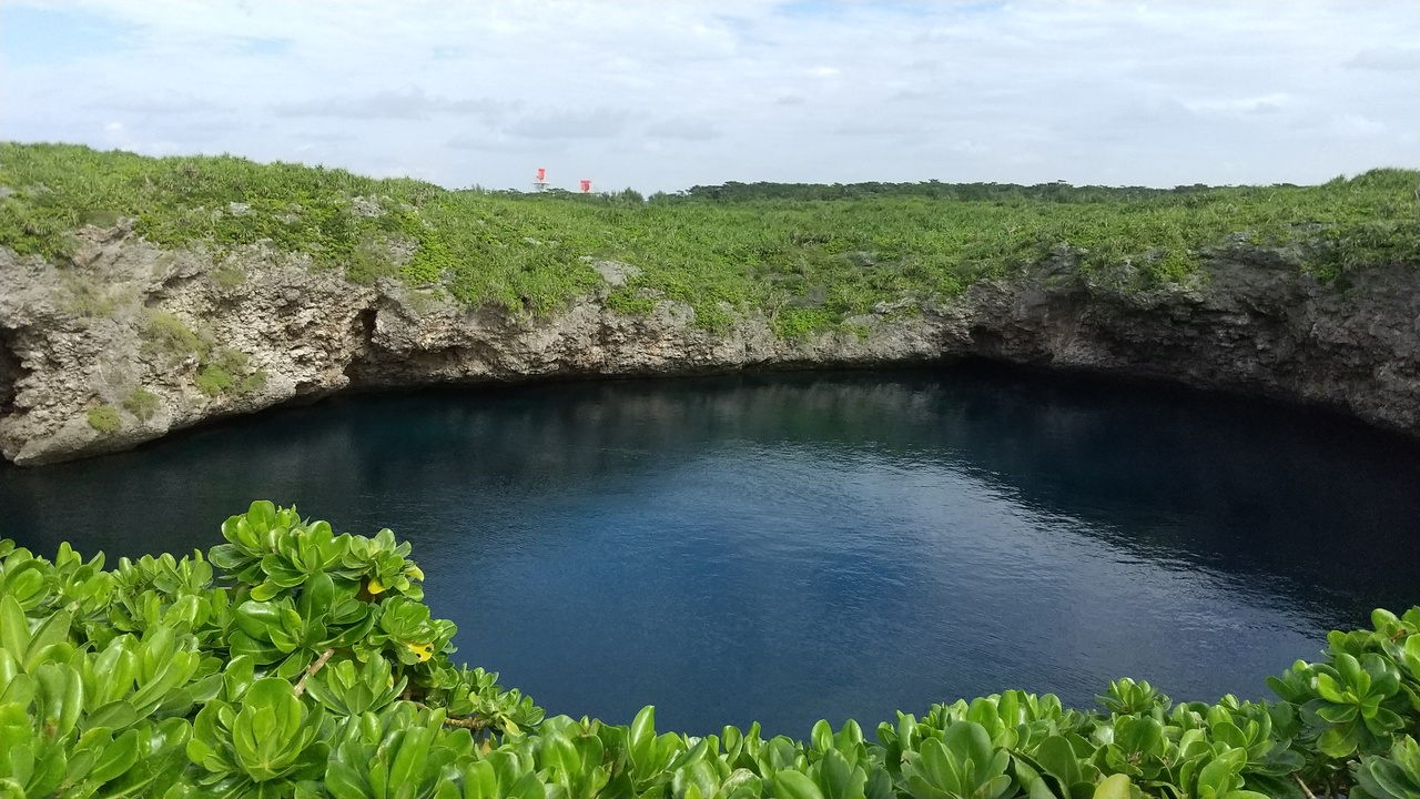 下地空港から近くレンタカーで行きました。陸側と海側の2つの池。隣接した池は地下で海と繋がっています。