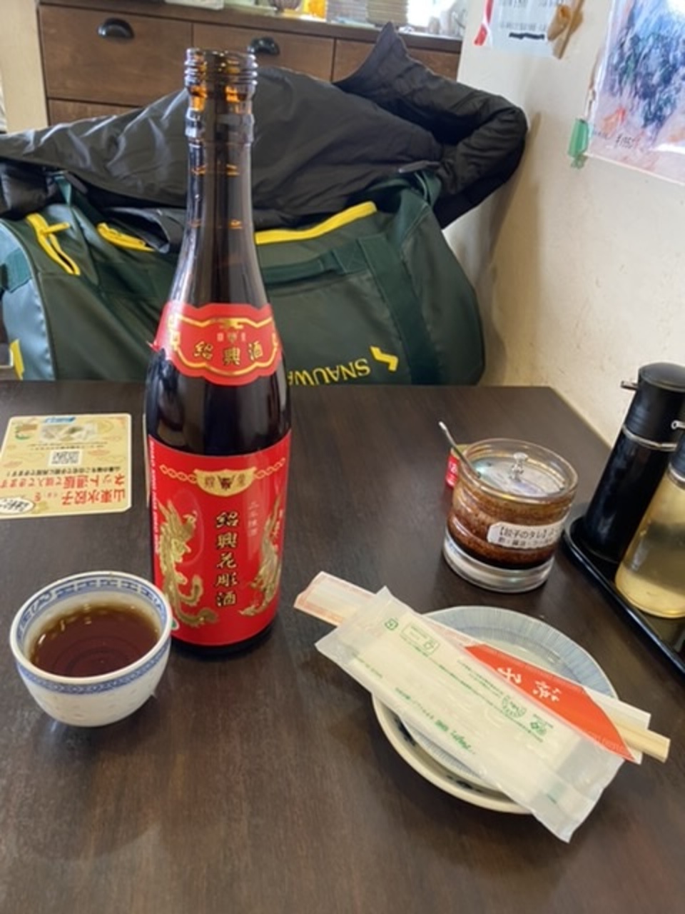 桃肌水餃子とセロリ水餃子を紹興酒で!