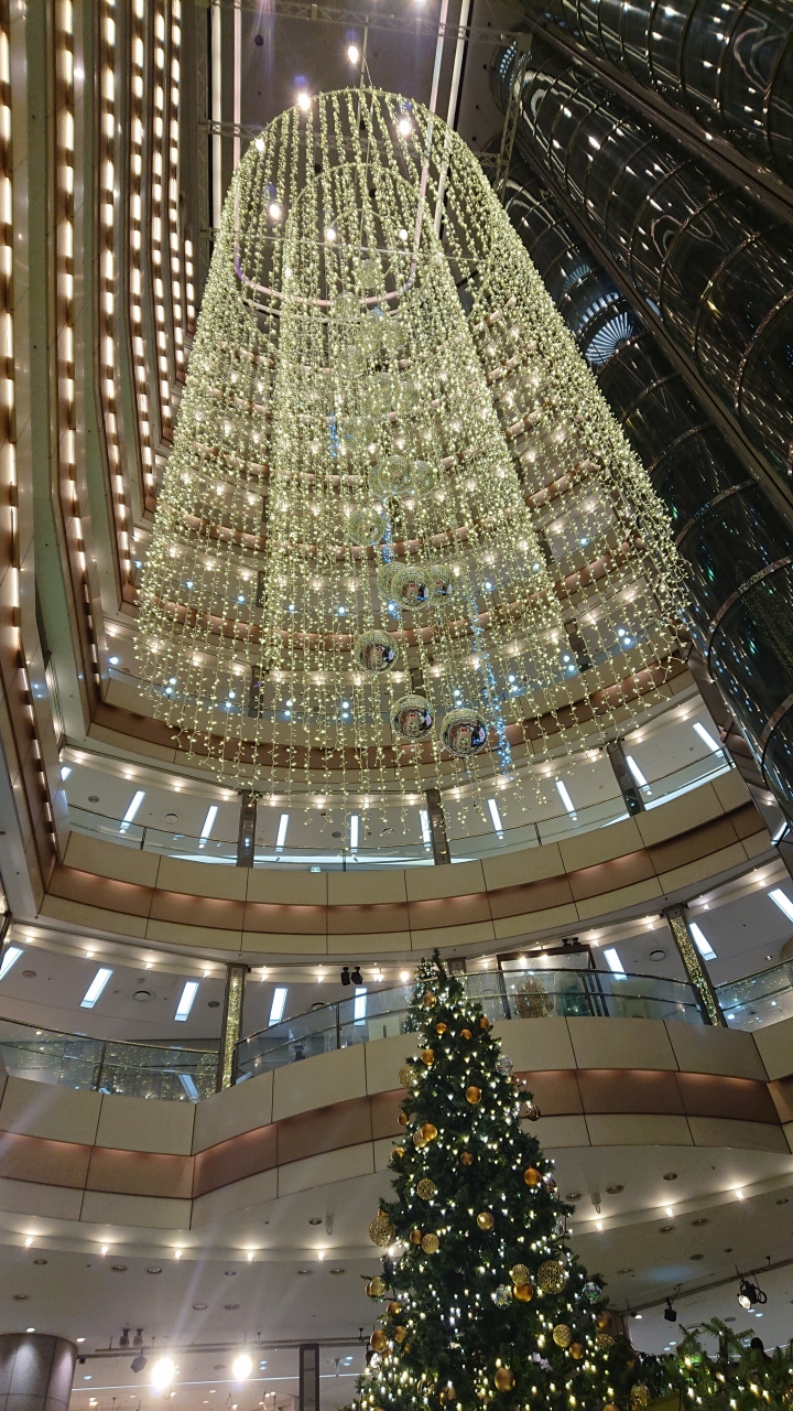 イムズの建物の外にも中にもクリスマスツリーなどが飾られていました。特に地下2階の広間に飾られていた大きなクリスマスツリーと、そこから見上げた吹き抜けに下がっている大きなイルミネーションの飾りが、とても綺麗でした。