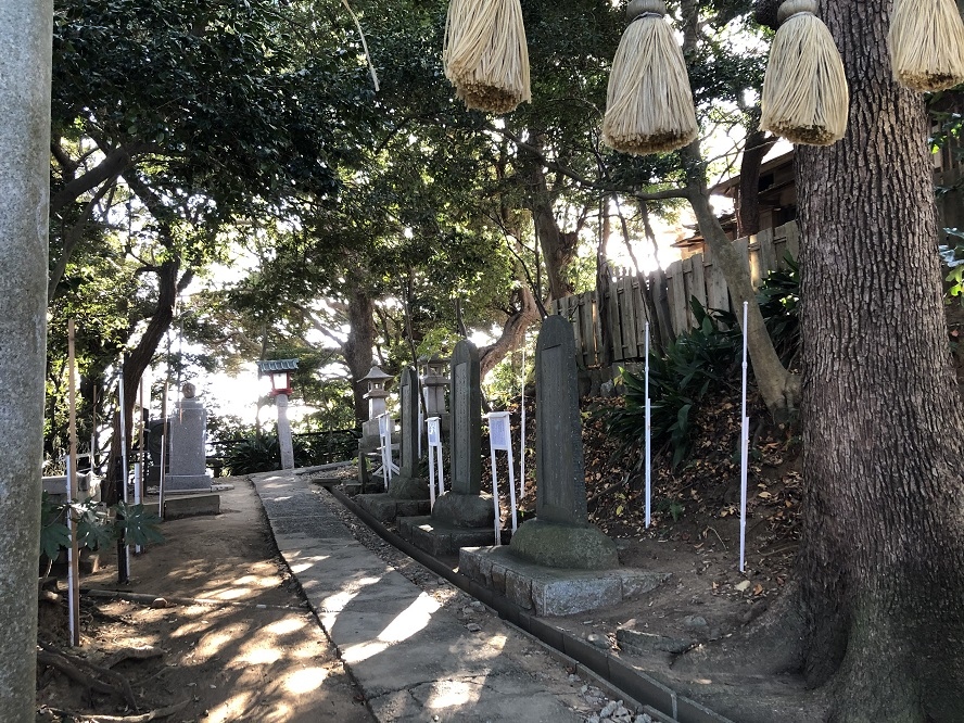 江の島の(一番下の)エスカー乗り場近くにある児玉神社の鳥居をくぐり、山に沿った階段を上っていくと、山の上に本堂があります。その本堂の手前の参道沿いに、3人の石碑が一列に並んでいます。そのひとつが石黒忠真子爵のもので、陸軍軍医の総監や日本赤十字社の社長など、西洋医学の日本への普及に貢献した人物として知られています。