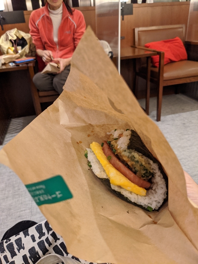 我が家は皆、スパムはあまり好んで食べないですが、こちらの「ポーたま」は全員大好きです。ボリュームがあるので、1個で十分お腹が満たされます。私のお気に入りは「ゴーヤの天ぷら」、娘は「エビフライ」です。テイクアウトの際は、店頭で袋を購入するか、あらかじめ小袋を持参すると良いでしょう。そのままバッグなどに入れると油がついてしまいますし、においや型崩れも気になるので。