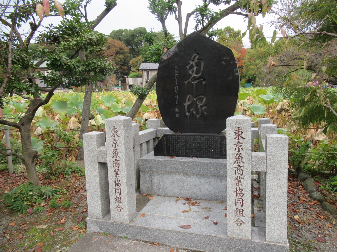 上野公園不忍池の弁天堂の周りには多くの碑や塚がありますが、こちらはその中の1つです。近くには、ふぐ供養碑やスッポン感謝の塔もありました。ふぐ供養碑には、ふぐの石像があってわかり易かったのですが、こちらの魚塚はシンプルに石碑に文字が書かれているのみでした。