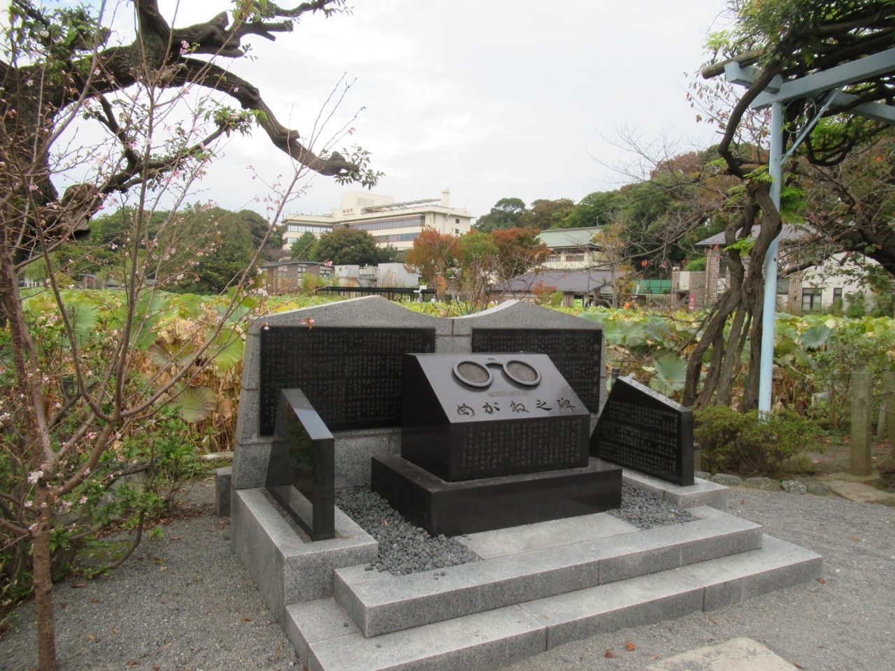 上野公園不忍池の弁天堂の周りには多くの碑がありますが、こちらの碑は分かり易くて良いですね。レトロな感じのメガネの形が碑に飾られていますが、こちらのメガネは徳川家康愛用のものらしいです。江戸時代にも眼鏡があったなんて驚きました。