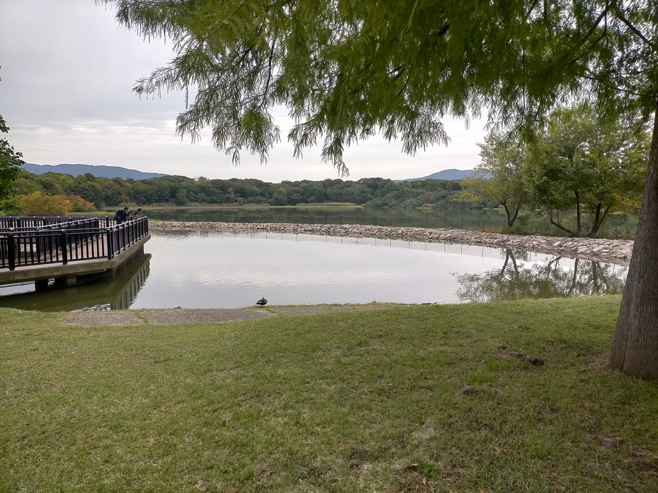 昆陽池は、奈良時代に僧行基が営造した歴史的なため池です。現在は、この池を中心とした公園として整備されています。市民の憩いの場となっている公園です。飛行機から昆陽池を見ると日本列島を模した人工の島をみることができます。この公園は、冬には3000羽を越える渡り鳥が飛来する野鳥の楽園とのことです。10月に訪れた時は数羽の白鳥がいました。野鳥の観察にgoodな場所です。