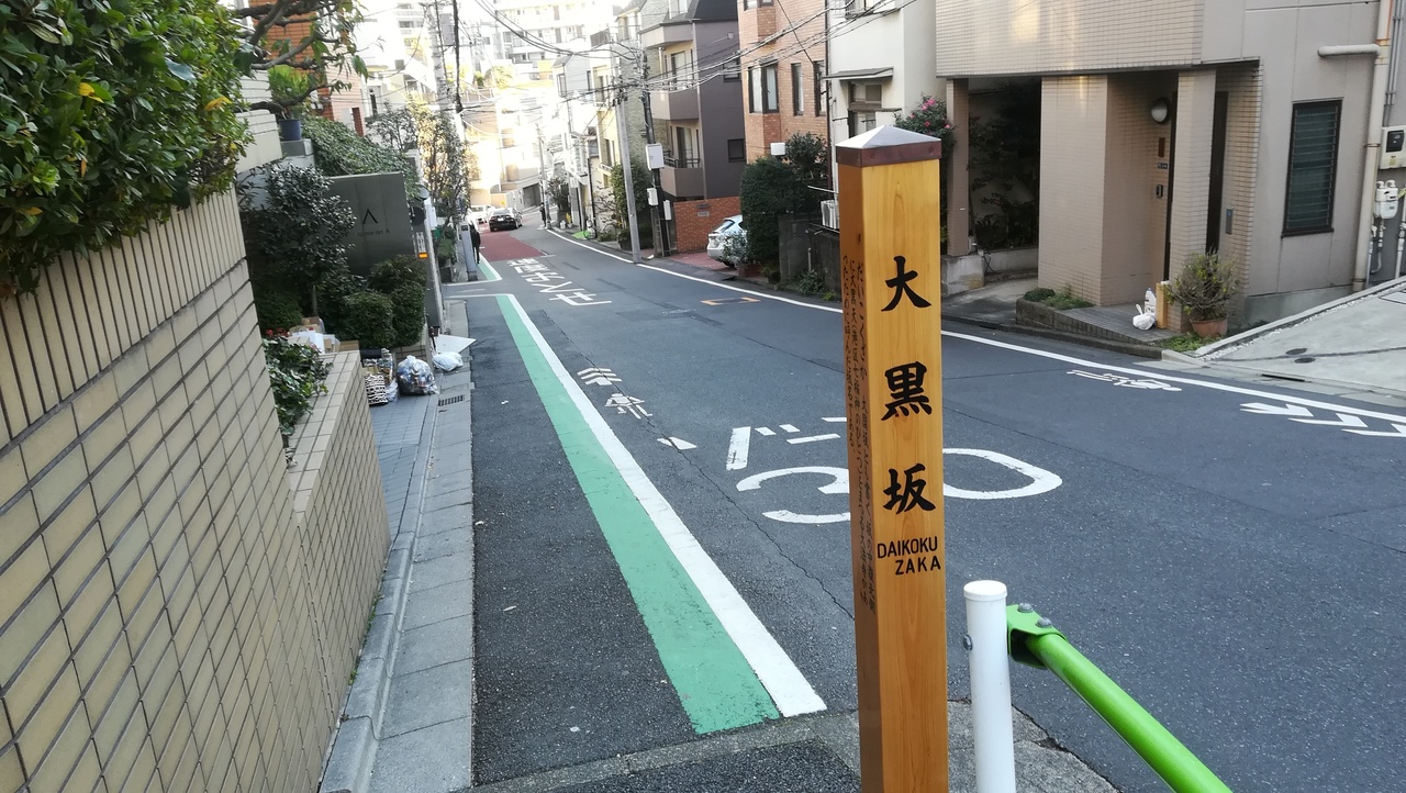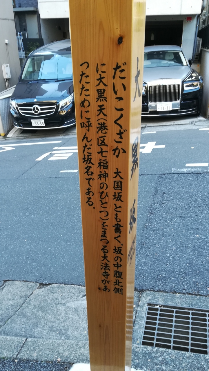 北側には、大黒天をまつる大法寺があったために呼んだ坂道だそうです。