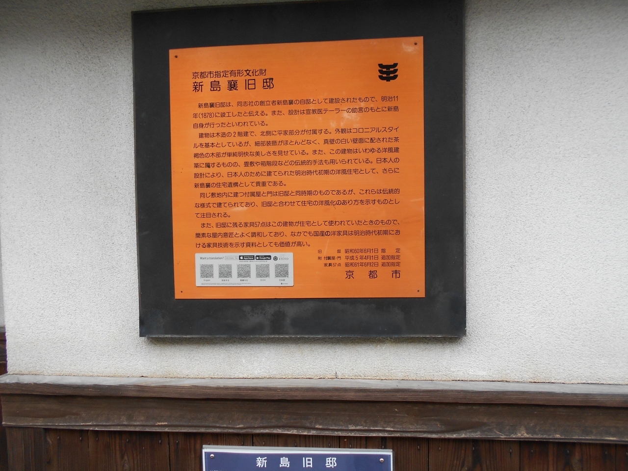 旧邸の場所は、同志社英学校が開校した際に仮校舎のあった地です。建物は和洋折衷で外観がコロニアルスタイル、造りの基本は和風寄棟住宅となっています。内部には入れませんが外部からの見学はできます。入場は無料です。内部の公開日がありますのでネットで確認してください。