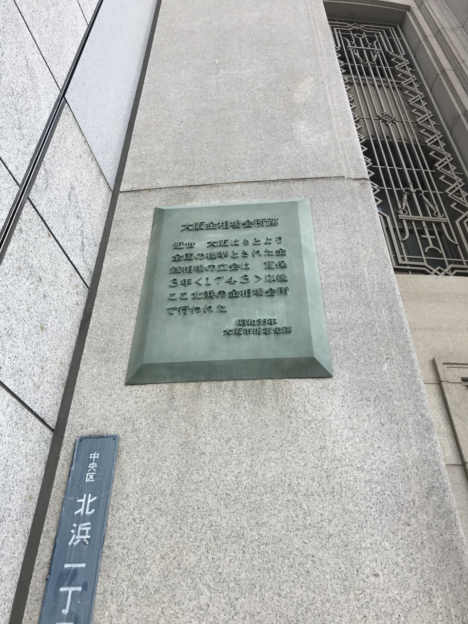 大阪金相場会所は当初(1660年設立)高麗橋に設置され、1743年に北浜へ移転しています。「金相場会所」というのは、当時の通貨(金、銀、銭)間の複雑な交換比率を決定っするための機関のことです。1868年に閉鎖となりましたが、その跡地に大阪証券取引所が開設されました。