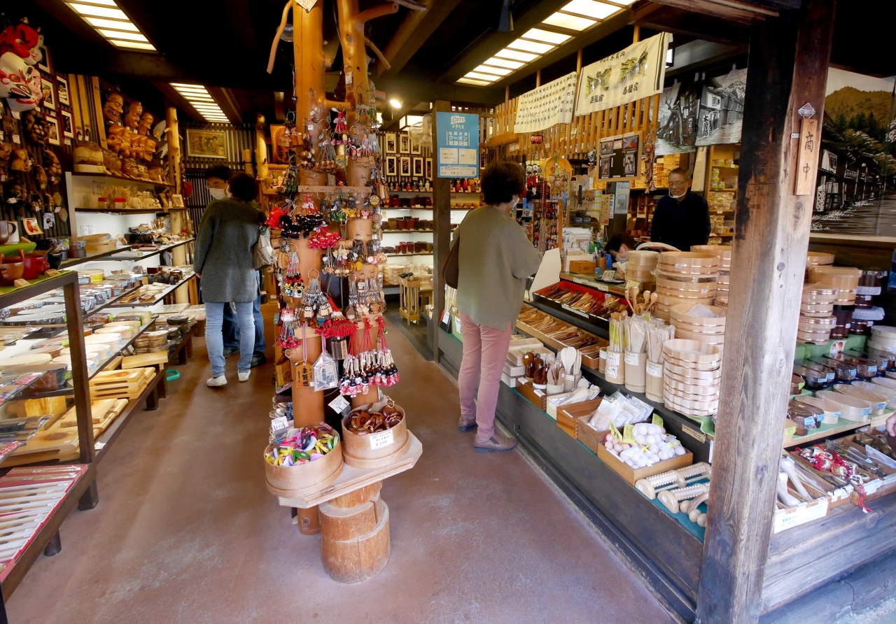 以前にも手製の木桶や宮島(しゃもじ)を購入したが,今回も同僚が桶が欲しいというので,それ目当てで妻籠に寄った.紅葉もきれいで,人出も「コロナ禍」の中,「Go To 」のせいか凄かった.前より少し高い気はしたが,それでも精いっぱいの価格とのこと.地域クーポンも有効なのでしようした.いろいろ説明してくれてやはり親切な店だった.