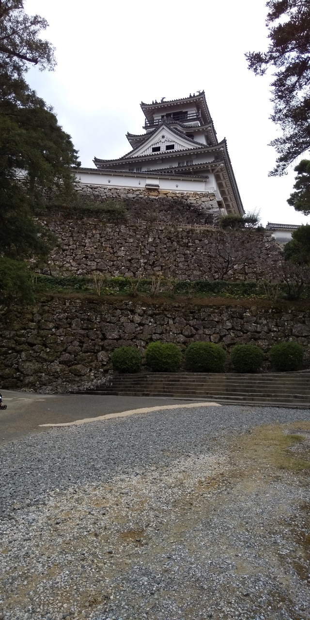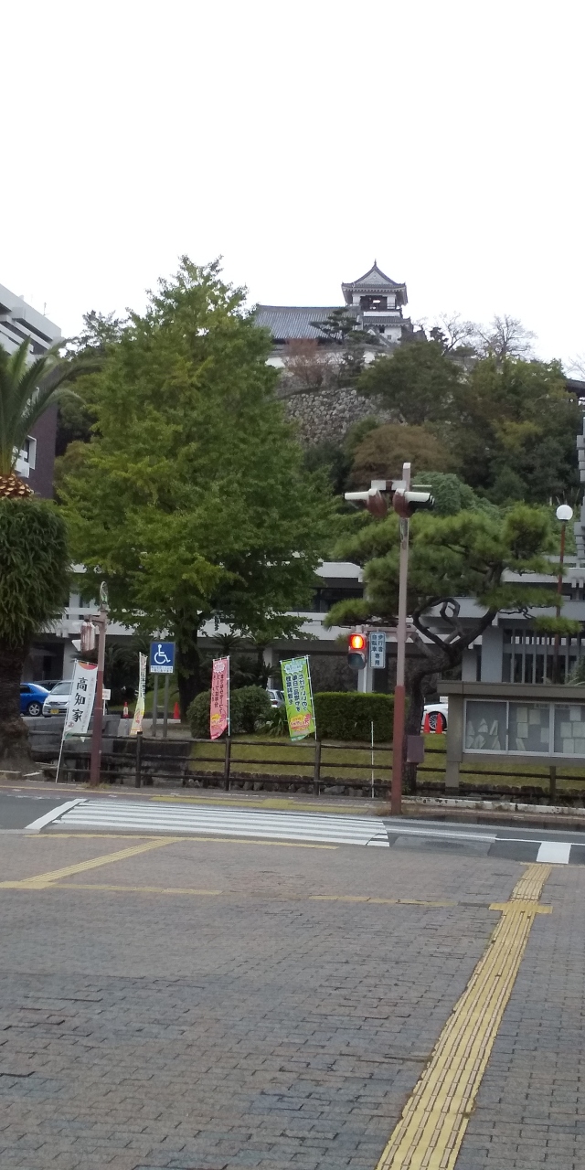 路面電車の県庁前の駅から北側の通りの奥に高知城の天守閣が見えてお堀を回って追手門から入城しました。天守閣へ向かう途中にある板垣退助像や馬を引いた山内一豊の妻の像を見ながら坂道を登っていきましたが、石段の高さが一定でなかったりして上りにくかったです。