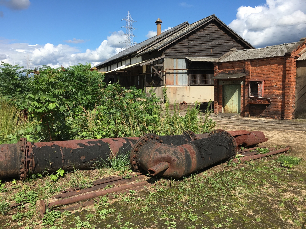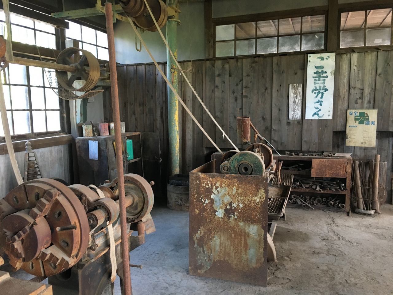 草ぼうぼうの空き地に打ち捨てられて鉄材、作業建屋の中で放置された機械類は、見方によればガラクタの山である。しかし、これを見ていると数十年前で時間が止まったままで、ここに人を配置して「パン!」と手を叩けば、当時そのままに作業が始まり、機械が動き出す状態だった。もしこれらが綺麗に整理され「展示物」になったら、この「リアルさ」が消え寂しいものになってしまうだろう。