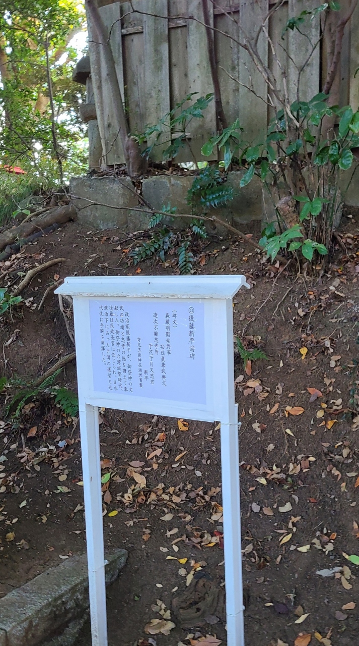 日本統治下にあった台湾の運営と近代化に手腕を発揮した方だそうで、児島源太郎のやはり縁のひとであり、御祭神を讃える詩だそうです。
