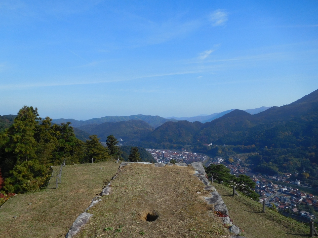 石垣の上からは津和野の町が一望できます。青空に向かって飛び出せそうな解放感でした。