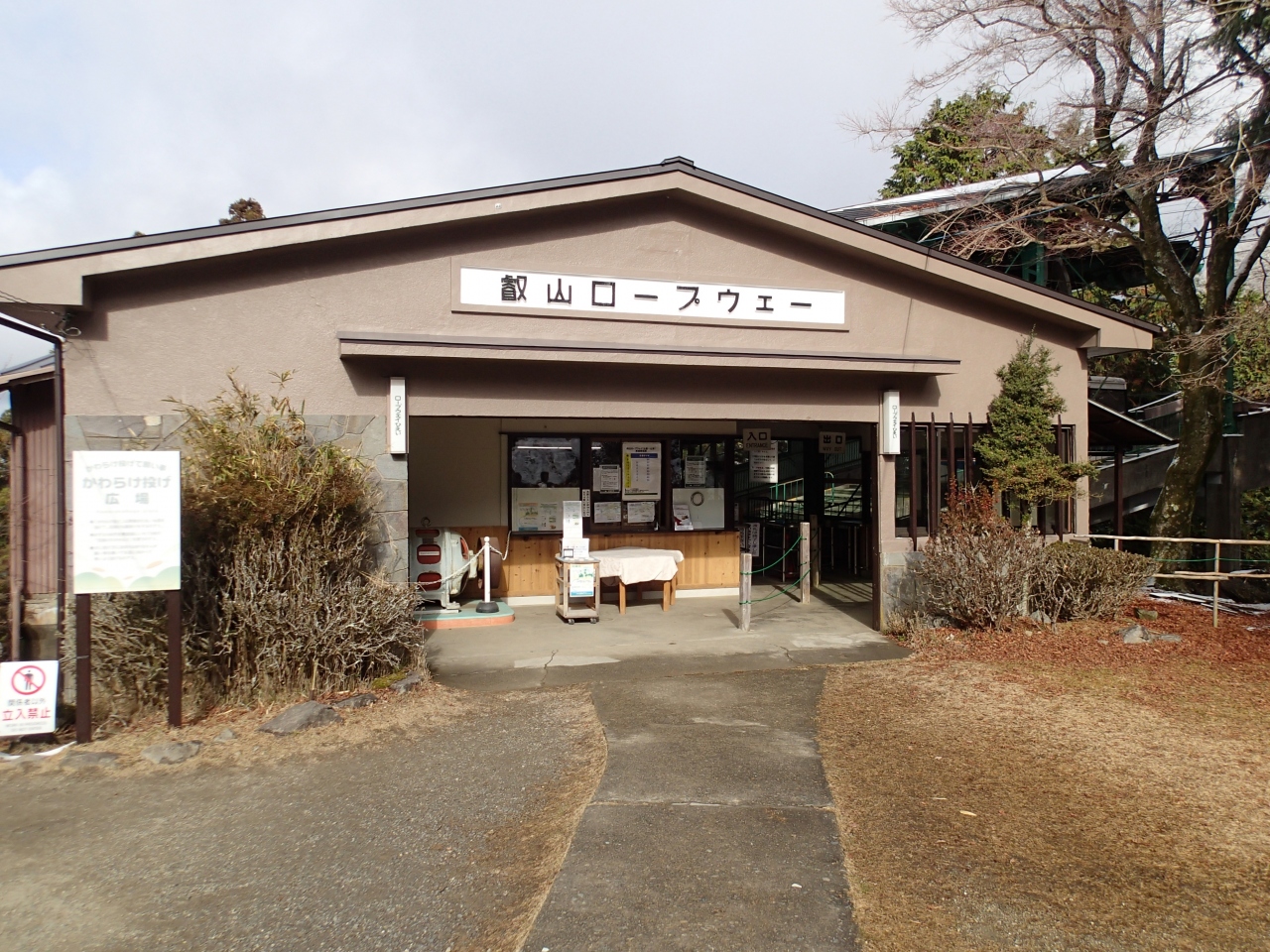 バス停からロープウェイ駅までは少し離れています。