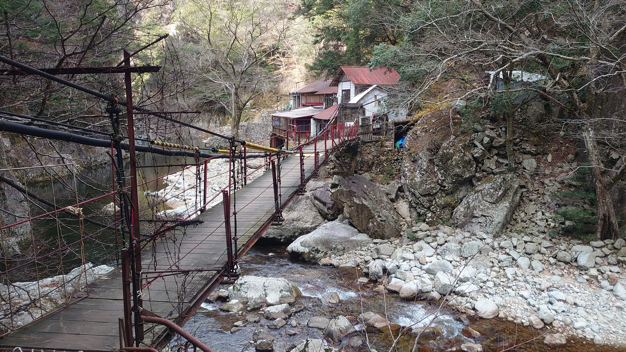 三段峡の正面口から歩いていきました。予想していましたが、結構遠いです。ところどころ写真を撮りながらゆっくり歩くと目安以上の時間がかかりました。黒淵は静かな淵でしたが、大雨が降ると大きな石が流されてきて船底についてしまうそうです。維持が大変そうでした。