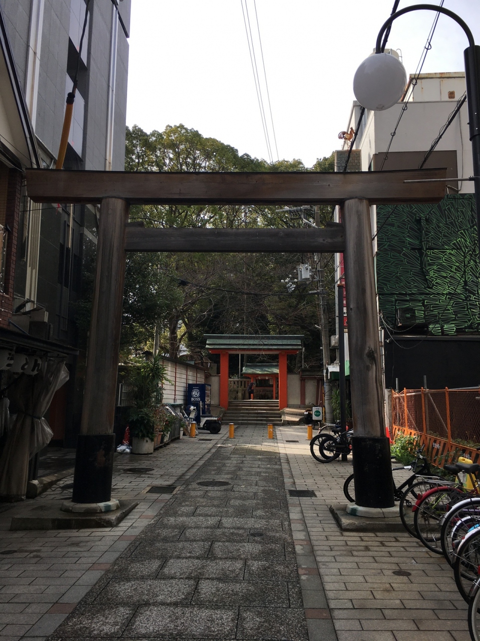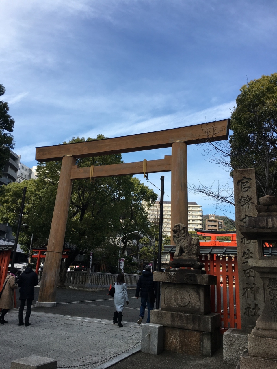 神戸の繁華街の一角にありましたが静粛な場所でした。2つの鳥居を潜ると楼門、拝殿、本殿と一直線になっていて裏には生田の森と言う木々に囲まれたところがあります。出入口がいくつかあり長方形の敷地で、境内に社がいくつかあります。