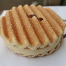 ガワはまんま千寿せんべいですが、間にたっぷりとアイスがサンドしてあり、美味しいです。
