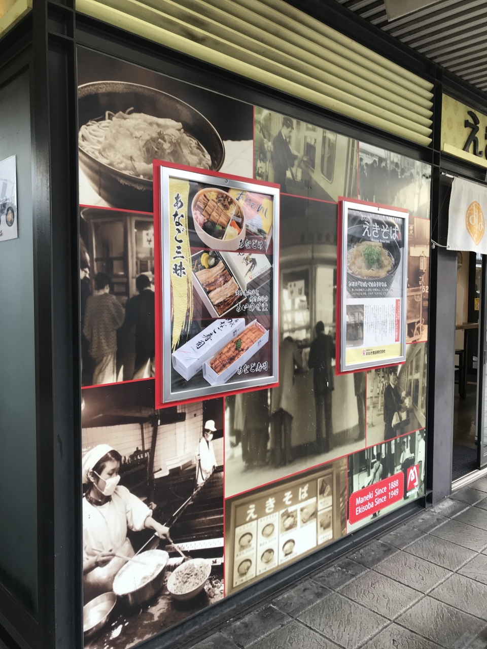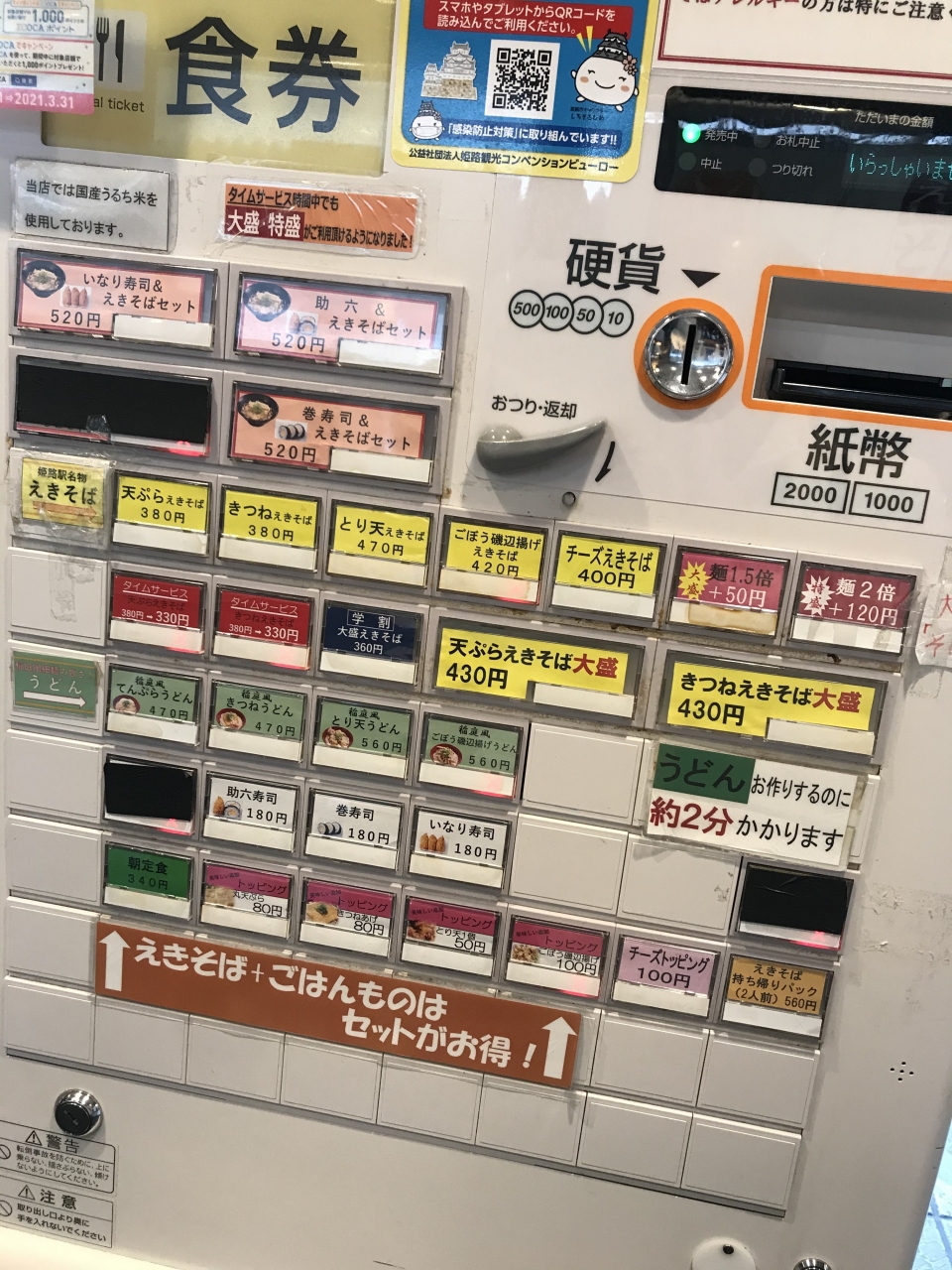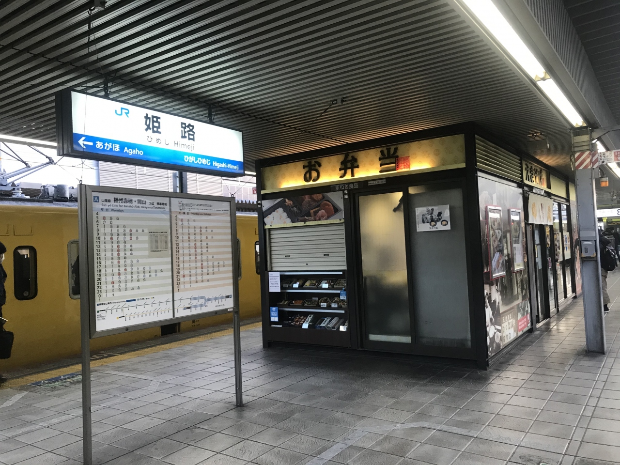 歴史ある姫路駅ホームのまねき食品の駅そば