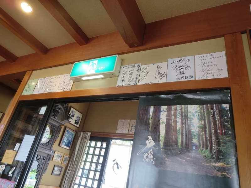 戸隠五社巡りを終えて、せっかくだから戸隠蕎麦を食べようと入りました。昼を過ぎていたので、そろそろお客も少なくなってきたころだったので、ゆっくりくつろぐことができました。そばはコシがあってさっぱりしていました。有名人の色紙も飾られていました。