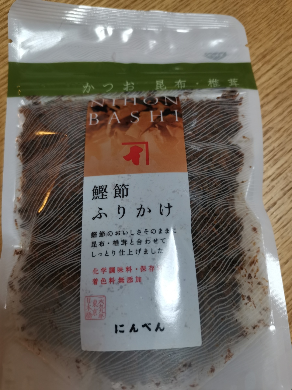 今回はおかかの半生タイプのふりかけを買って帰りました。こちらのふりかけは何種類かあるのですが、椎茸と昆布の入ったものが好きです。化学調味料、保存料、着色料無添加の商品なので安心して食べられるのも気に入ってる理由の一つです。