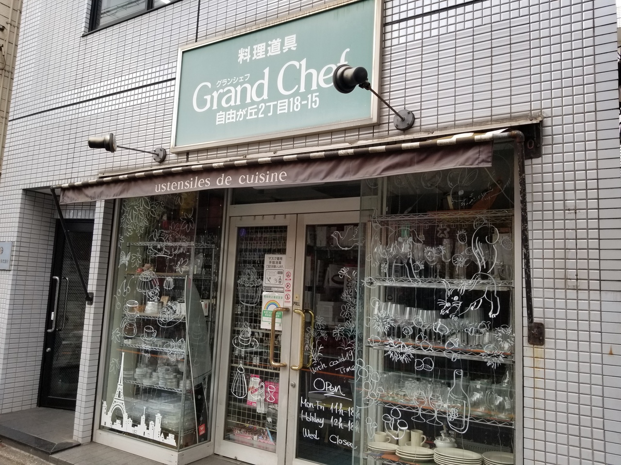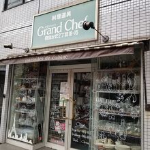 小さなショップだが、料理道具、製菓や製パンの道具、食器など、種類も豊富に置いてある。シンプルなプロ仕様の物が多い。食器などは全体的に少ない。