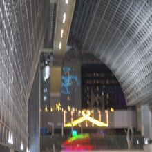 京都駅ビルの大階段のイルミネーションを見ました。今年はソーシャルディスタンスの文字が浮かび上がったりするのが見れました。大きくて見ごたえがあります。写真を撮る人が次々来ていました。大階段とは逆の、東側にもイルミネーションの飾りがありました。