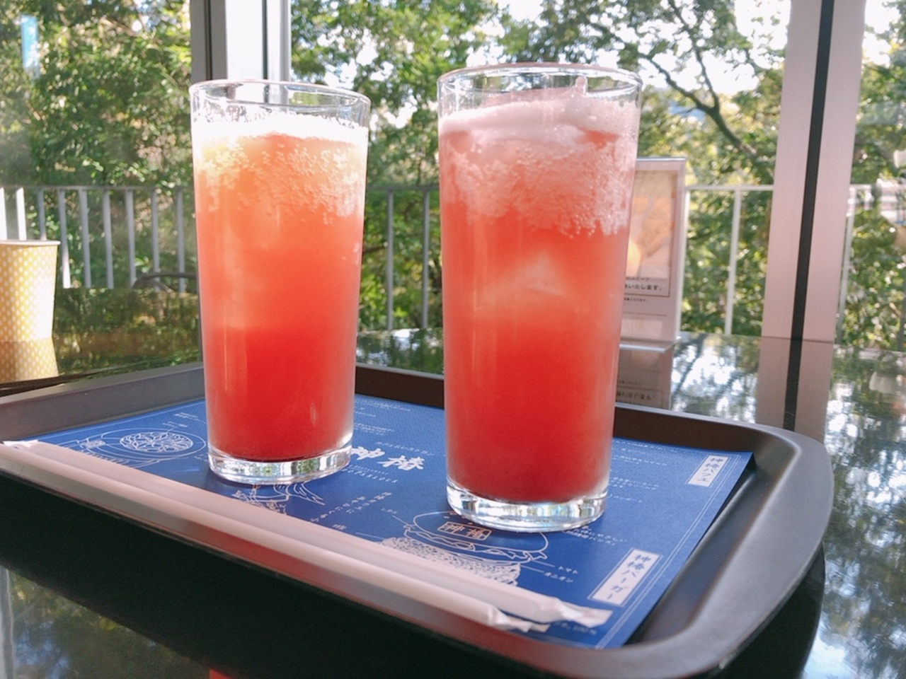 丸いテーブル、木漏れ日が店内全体に行き渡り、店内だけが別世界だ。